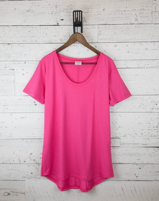 OMG! I wasn't sure about buying this T-shirt, I can usually find *some* options in stores or other places online, but WOW! I have never had a T-shirt fit me this well before! I am 5'10" and 250 lbs, so always shopping in the plus-size anyway, but so AMAZING to have a t-shirt fit me in the shoulders, the arms, the chest, the waist AND all the way down to my hips! The fabric quality is so excellent and the styling is perfect! I've just bought two more, one in the new blue colour and really excited about the lower neckline with the V-neck - it'll be even more flattering! Thanks for making me feel like a million bucks!